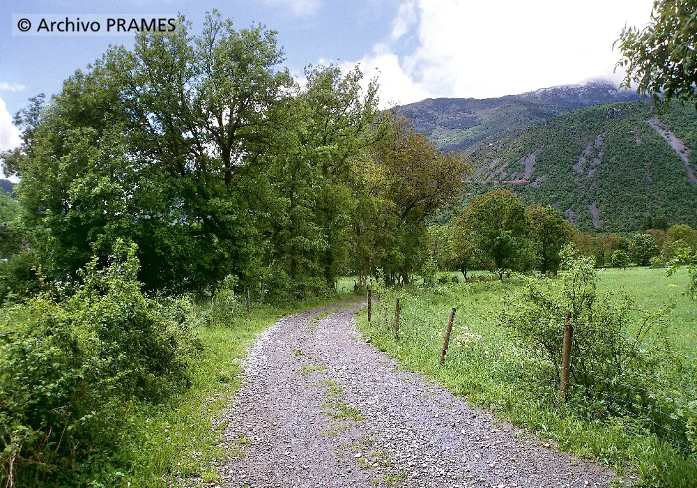 Partiendo desde Castejón de Sos, la ruta avanza inicialmente por pistas y caminos tranquilos, cruzando la vega del río Ésera y zonas de llanura aluvial. Luego empieza un ascenso progresivo hacia Arasán, a través de bosque de quejigos y robles, y por caminos tradicionales de montaña.